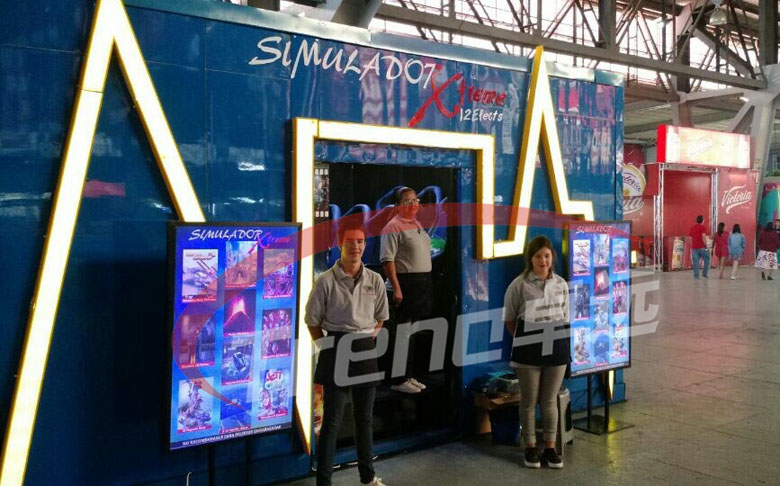 Our clients from Mexico have ordered a set of 9 seats 5D dynamic Cinema. Now, the 5d cinema has been built in a square in Mexico. Since the cabin box was cool styling and the 5d cinema was a novelty, it has attracted many customers. And the boos has earned a lot of money.